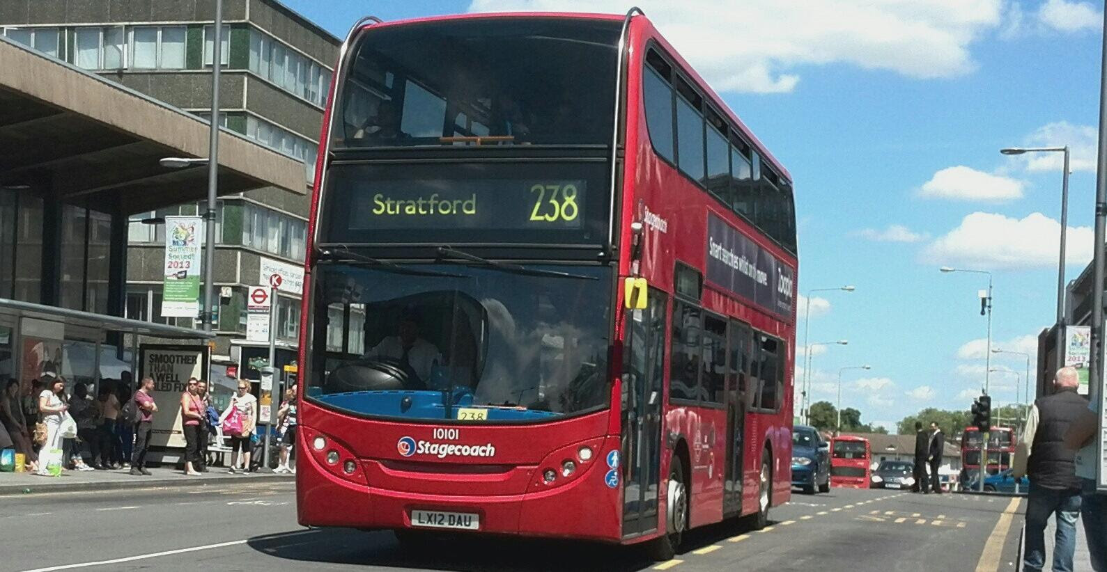 Stratford Bus Station is home to a variety of different routes, one of those routes is the 238. It is operated from the United Kingdom's largest and greenest bus garage, West Ham (WH). The route is allocated with Euro 5 engine, Voith Enviro400/E40D buses.